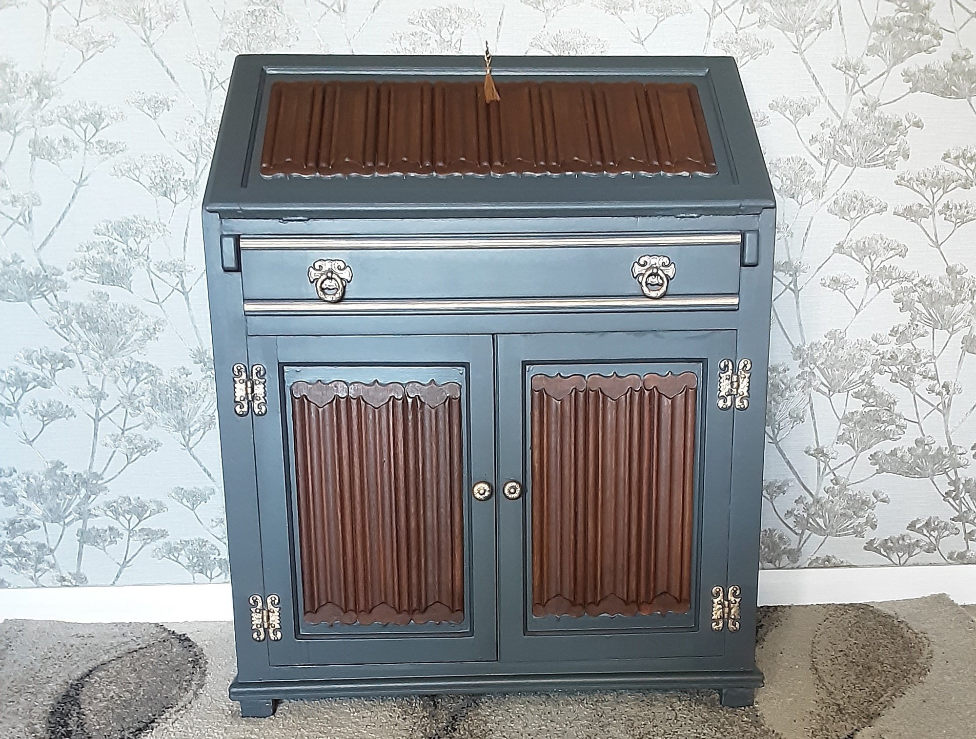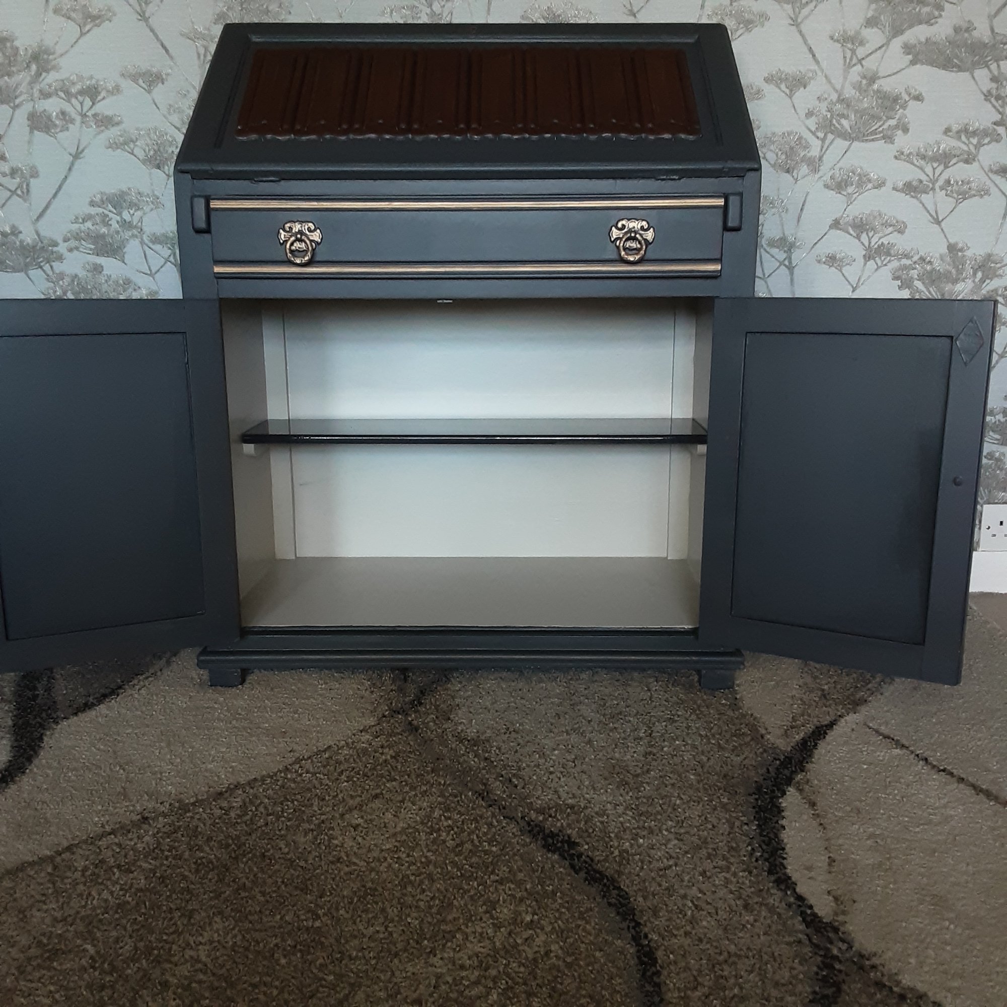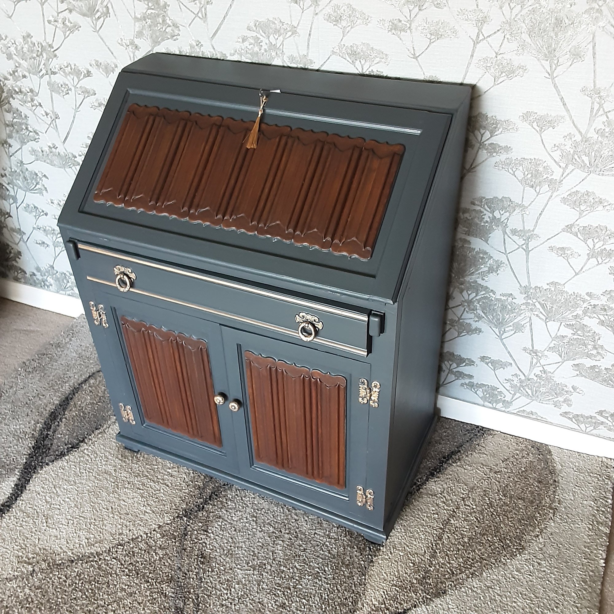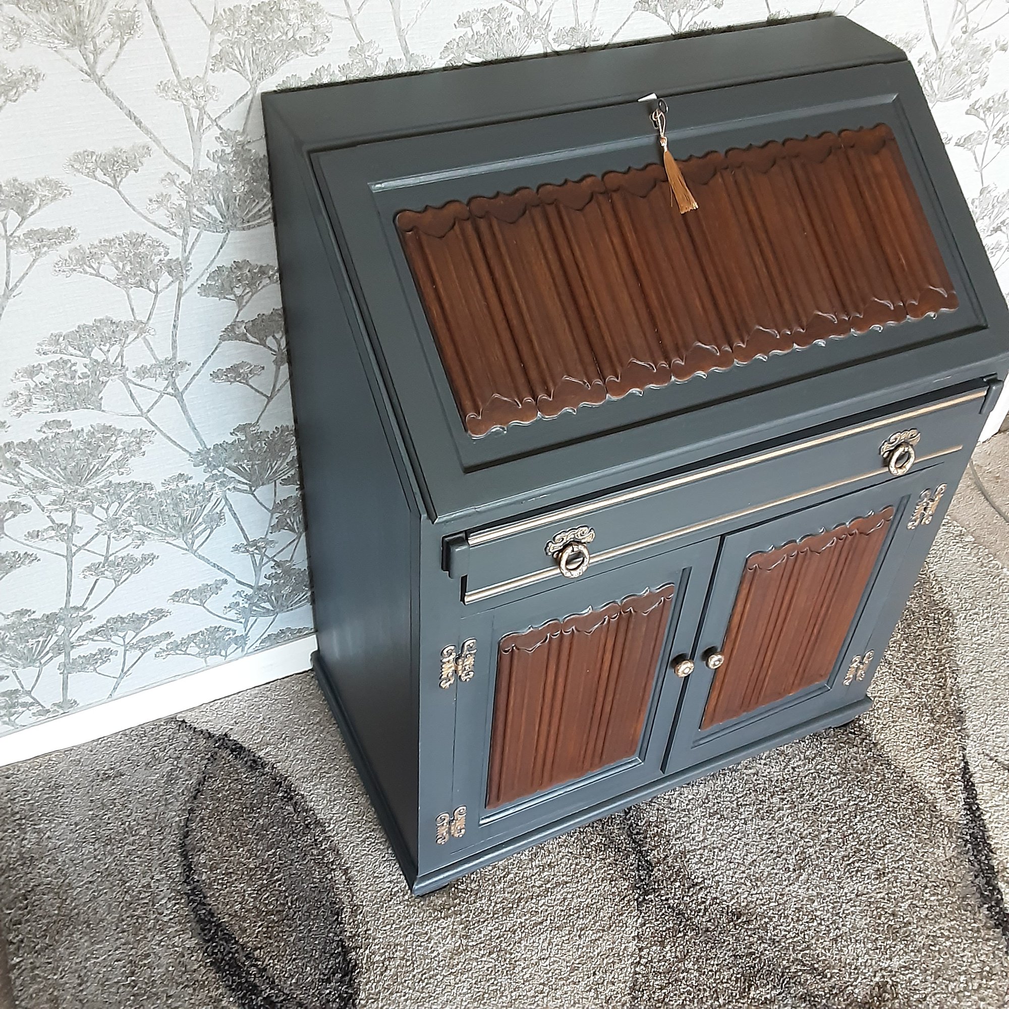 Old Charm writing bureau which we have finished in a slate grey shade of paint.