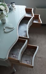 The stool we have finished in a William Morriss design grey fabric which matches well with the dresser.