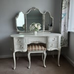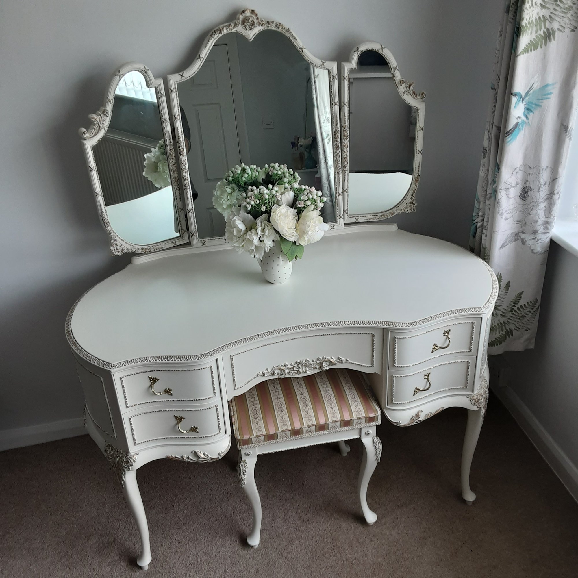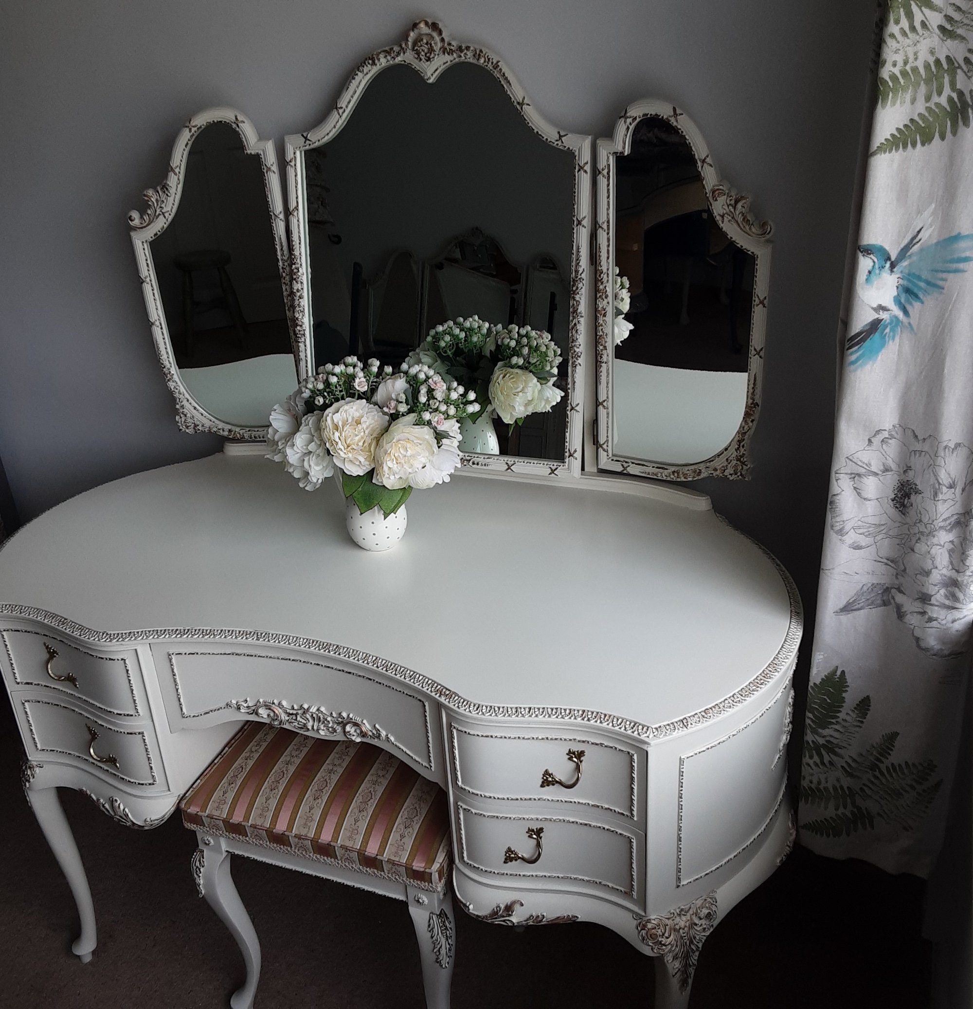 Original Cream Olympus French Louis style Antoinette Dressing Table with Mirrors and Stool.