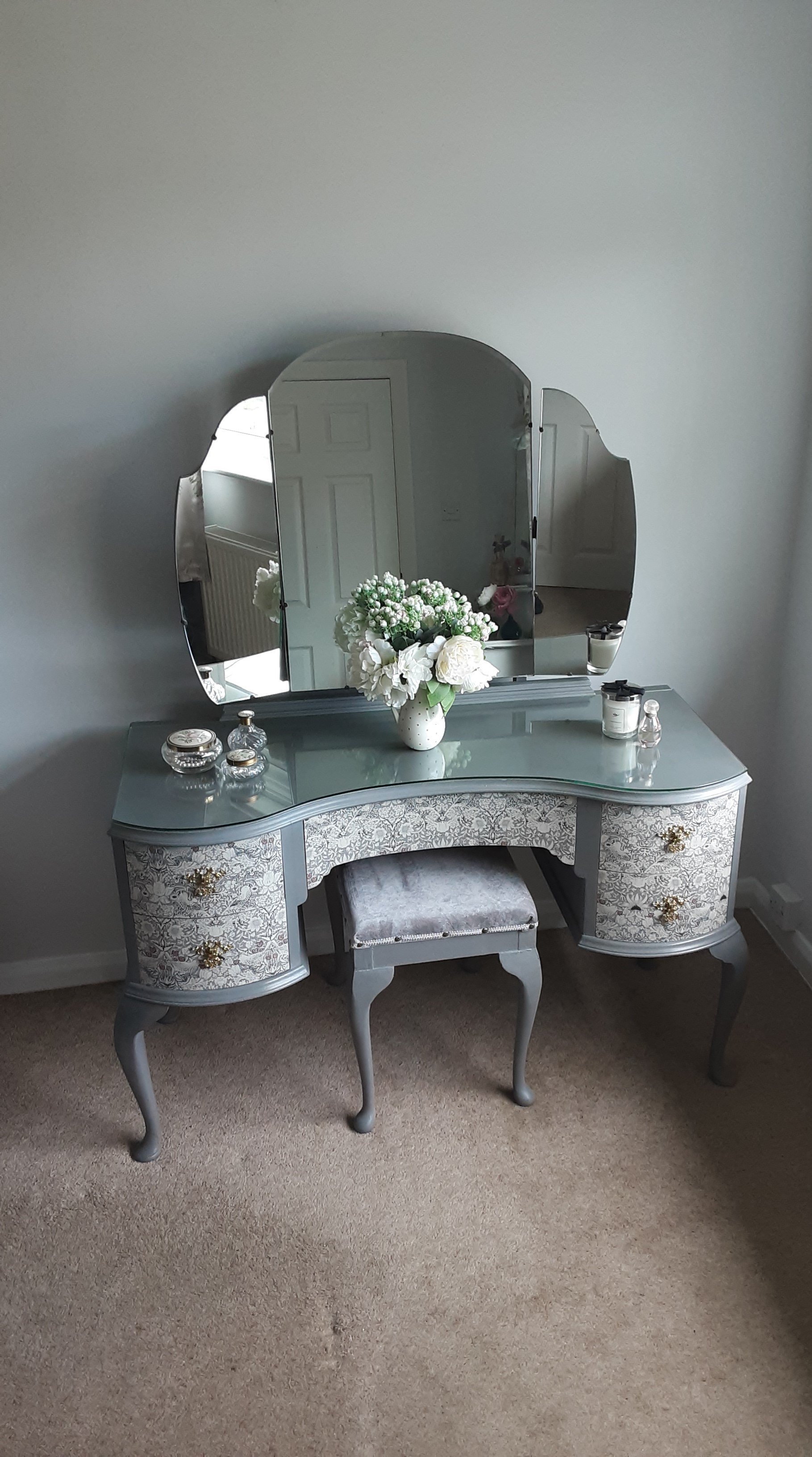 Stylish dressing table finished in Dove Grey chalk paint witj a wax finish for protection